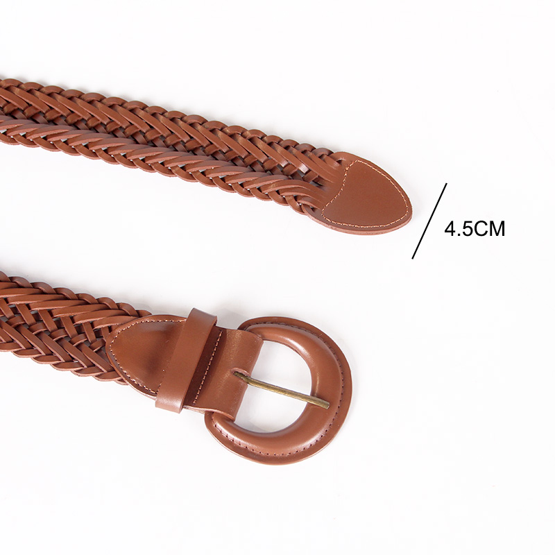a)This vintage weaving belt is made from soft braids PU Leather,the intricate weave design gives the belt a vintage look.The PU leather weaved belt matching leather-covered buckle elevates the overall look a more vintage feel.It can be matched with jeans and trousers as well as dresses and shirt.The braided blets have differents size suitable for various body types.This hand weaved belt is convenient to waer that you no need to punch holes on the belt,you can find the holes everywhere and insert the pin buckle to finish it.